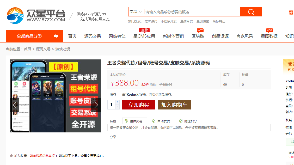 一套让人血压升高的王者荣耀代练/租号/账号交易/皮肤交易/系统源码